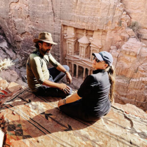 Meet in the Treasury at 10AM to start your full day tour in Petra. You will visit the viewpoint over the Treasury, take the mules to the High Place of Sacrifice and the Monastery and have lunch. In the evening you will head to the cave for a traditional Bedouin dinner and relaxing evening.
